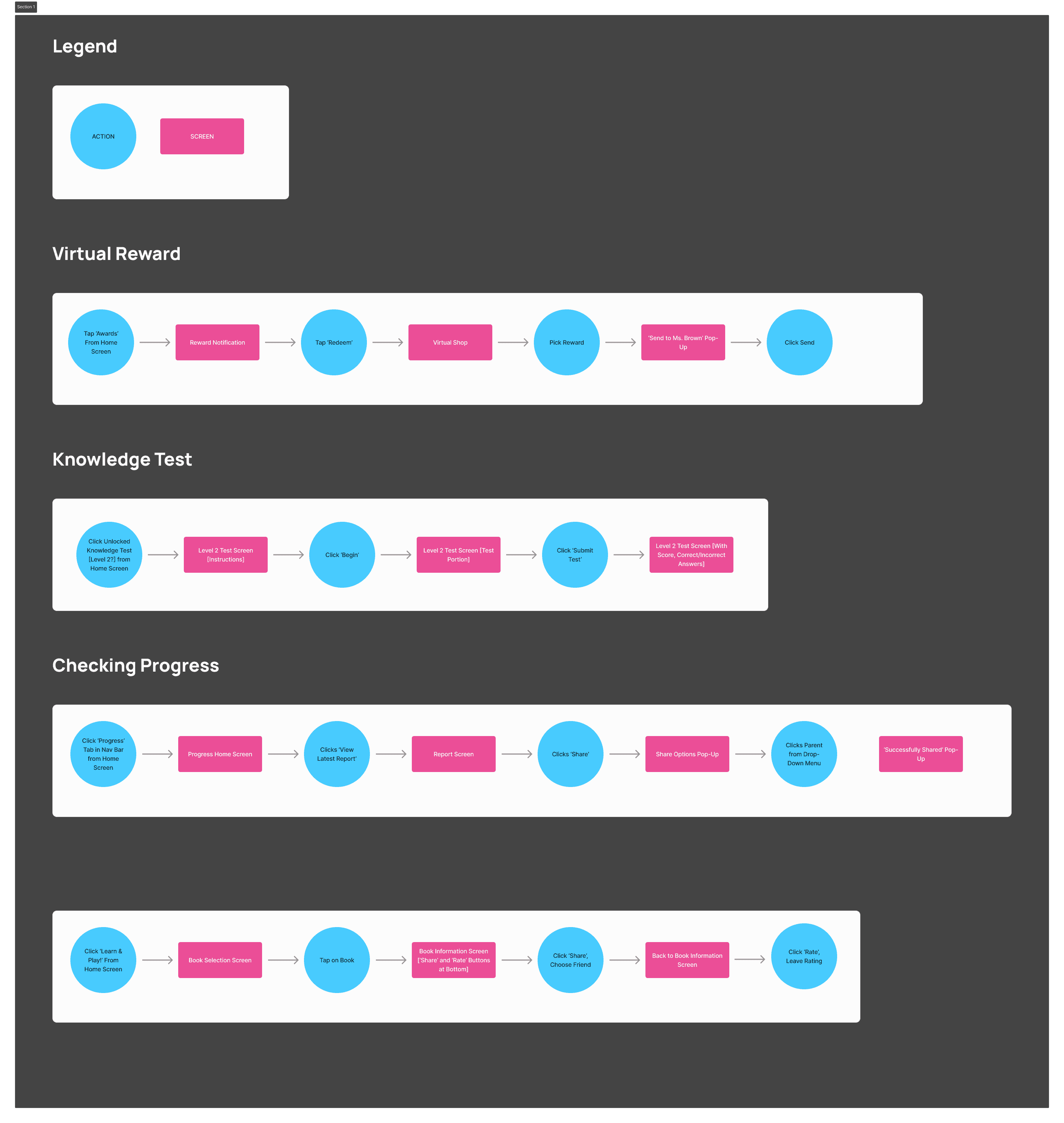 • Information Architecture: Determined the logic flow for progression from reading assignments, knowledge tests, reward feedback, book browsing/sharing.