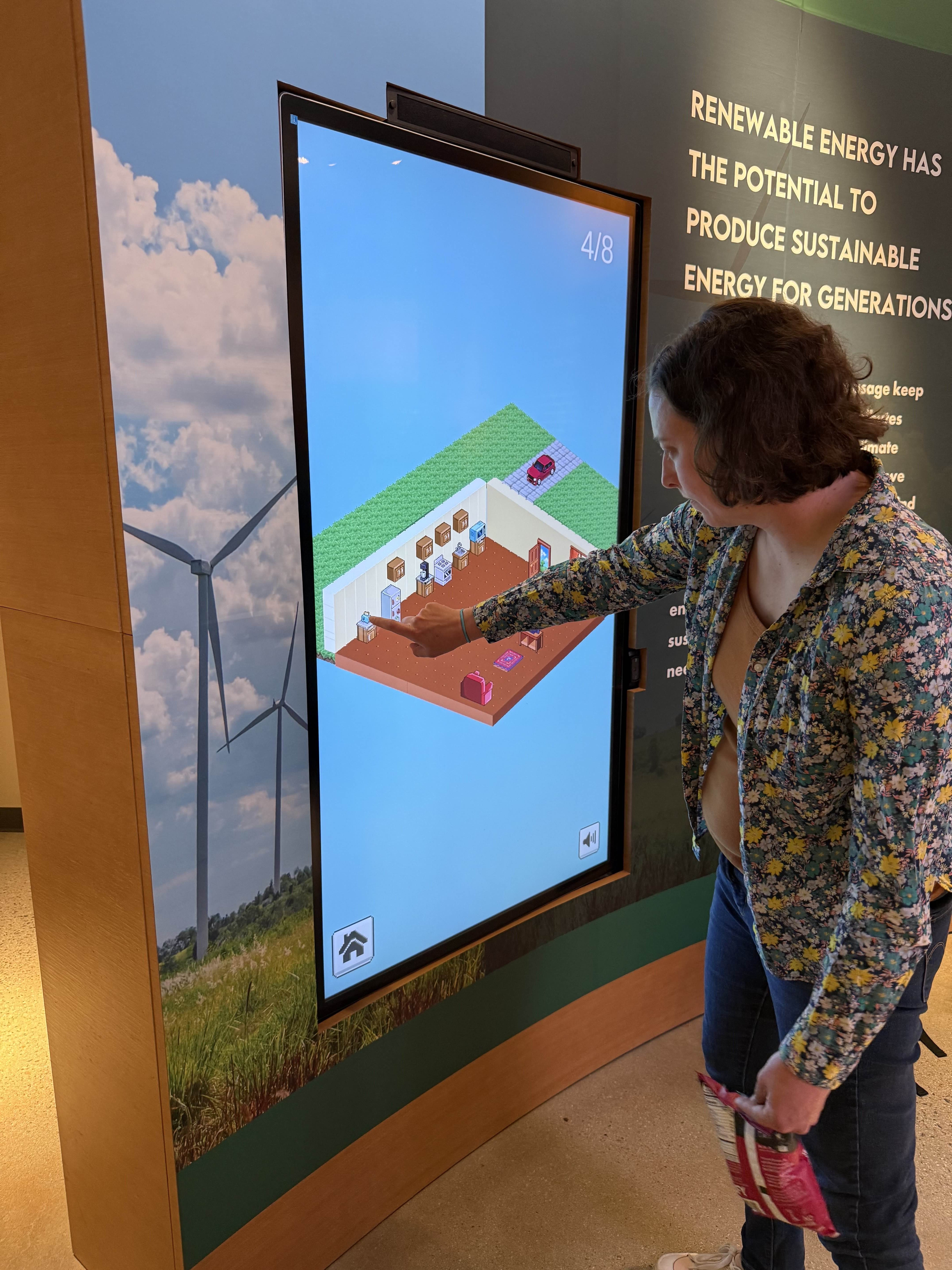 Museum visitors, particularly children and families were not thoroughly engaging with conservation topics and the Sustainability Center. The original screens featured long, unskippable videos that would play on each screen, which would not maintain the attention span of the typical visitor. The museum was looking for a way to make climate action feel more rewarding and fun within a 2-5 minute engagement window.